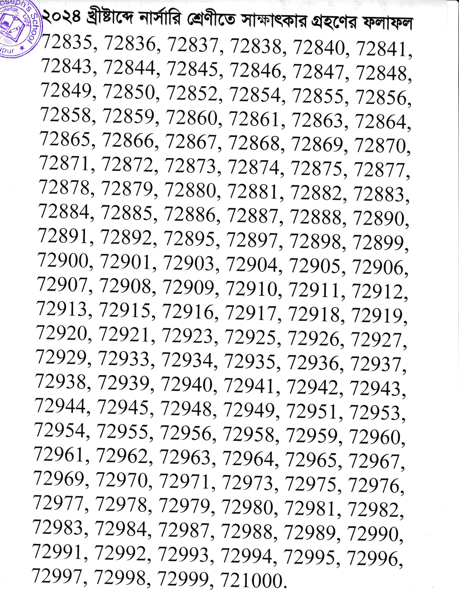 ২০২৪ শিক্ষাবর্ষে নার্সারি শ্রেণীতে সাক্ষাৎকার গ্রহণের ফলাফল.jpg | Download |