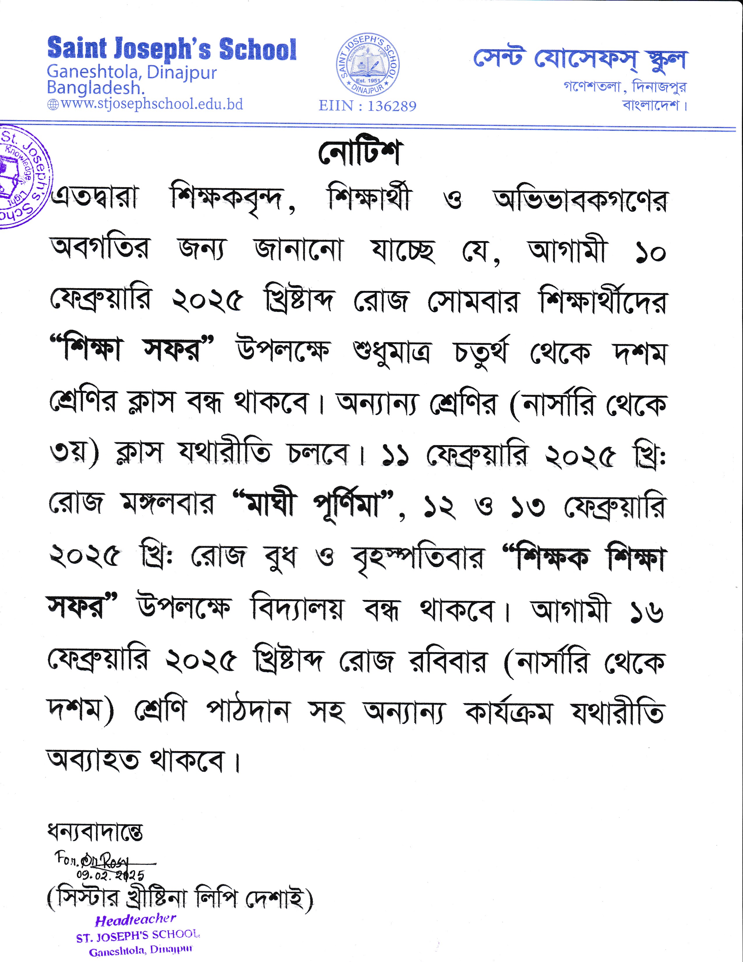 ২০২৫ খ্রিঃ শিক্ষার্থীদের “শিক্ষা সফর”, “মাঘী পূর্ণিমা” ও “শিক্ষক শিক্ষা সফর” প্রসঙ্গে