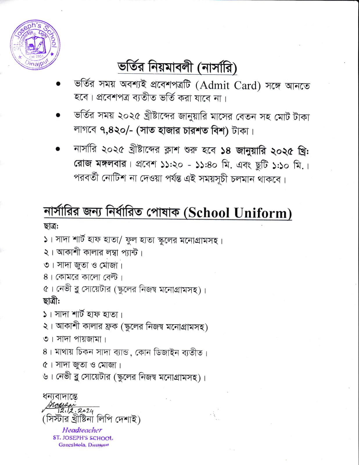২০২৫ খ্রিস্টাব্দে নার্সারি শ্রেণীতে ভর্তির নিয়মাবলী (নার্সারি)