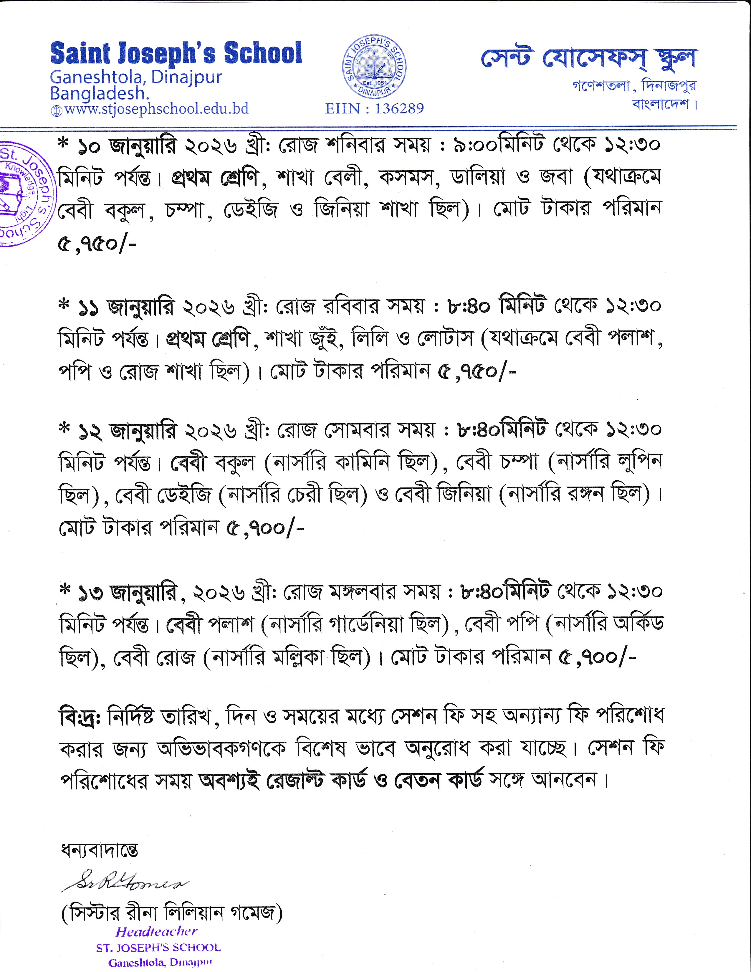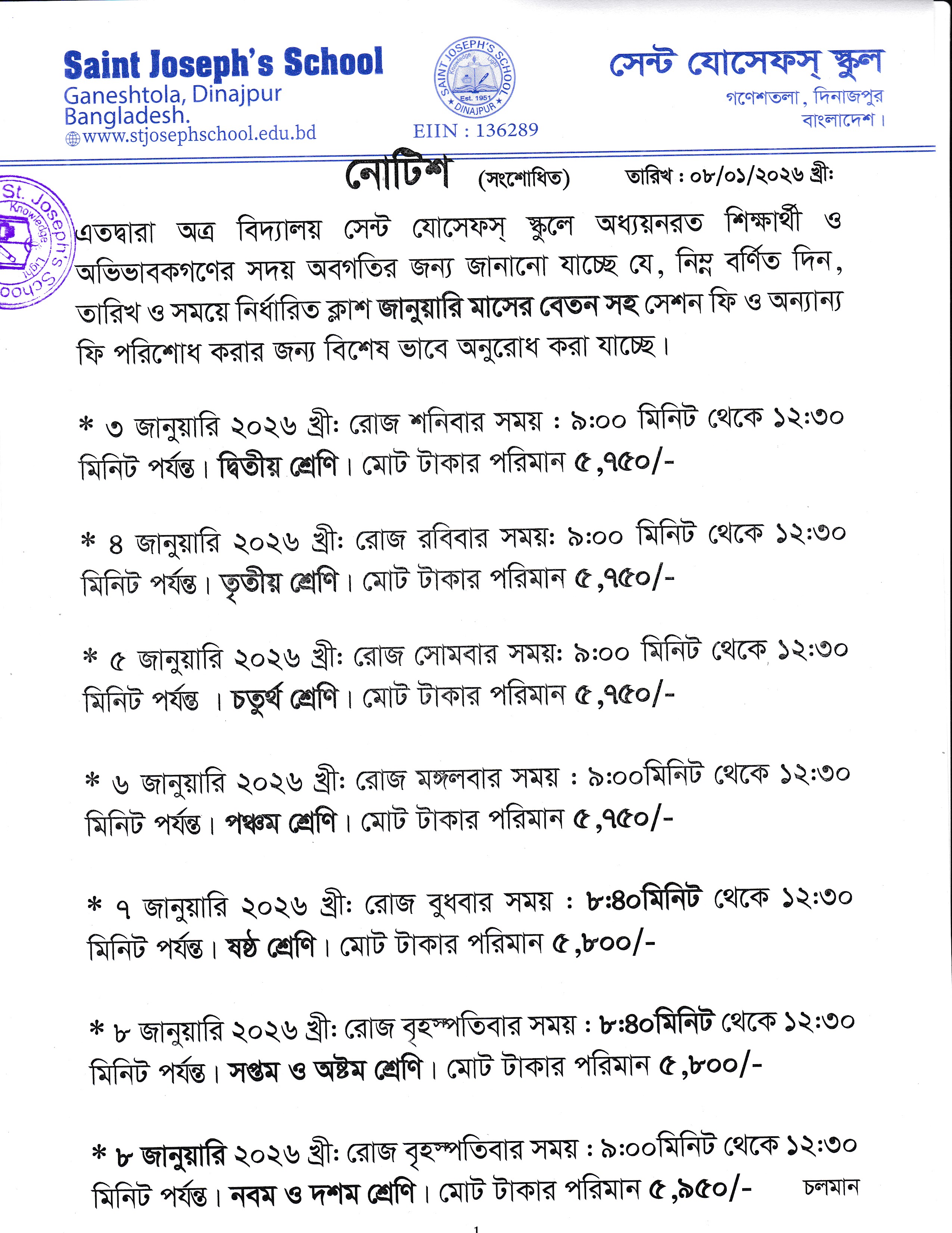 ২০২৬ শিক্ষাবর্ষে জন্য অধ্যয়নরত শিক্ষার্থীদের সেশন ফি ও অন্যান্য ফি পরিশোধ প্রসঙ্গে (সংশোধিত)