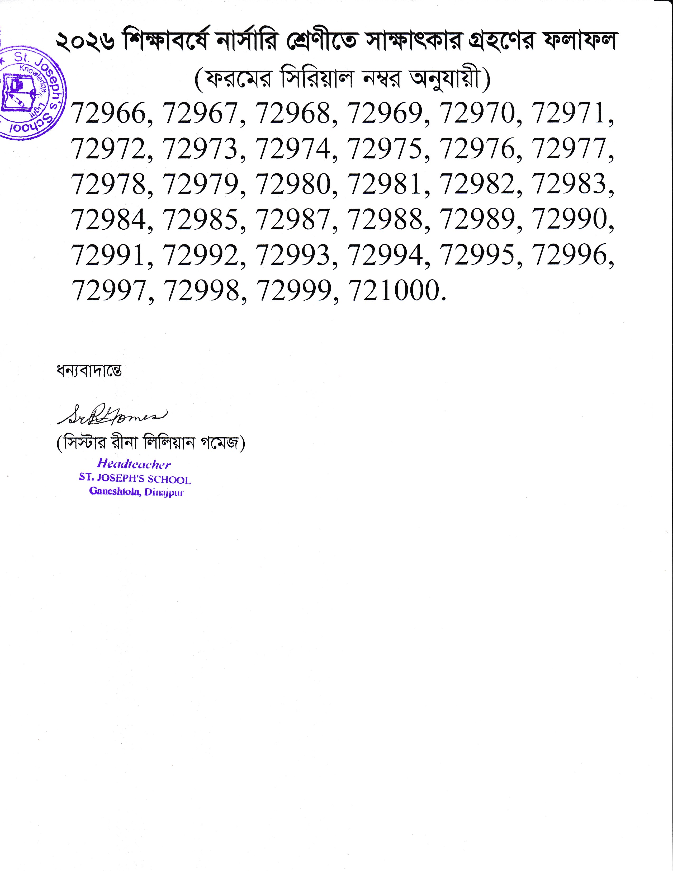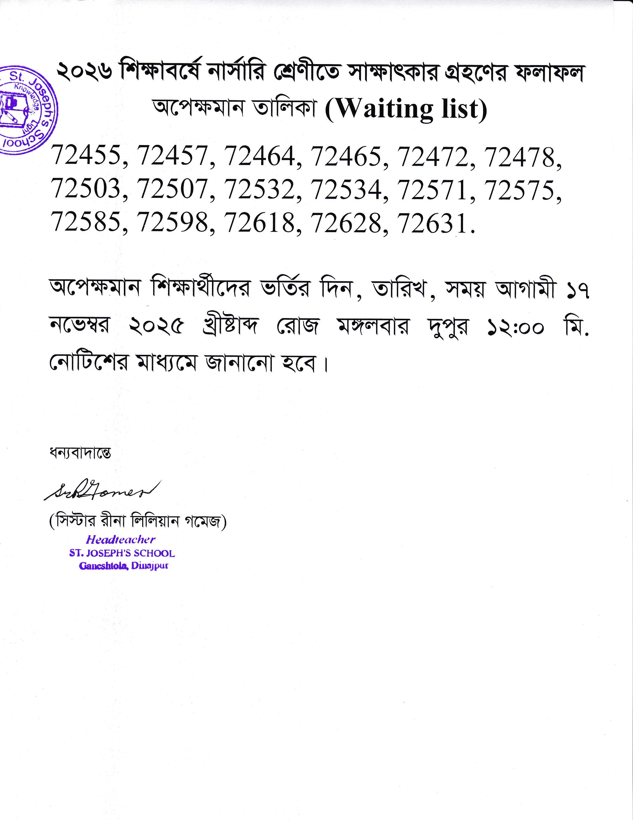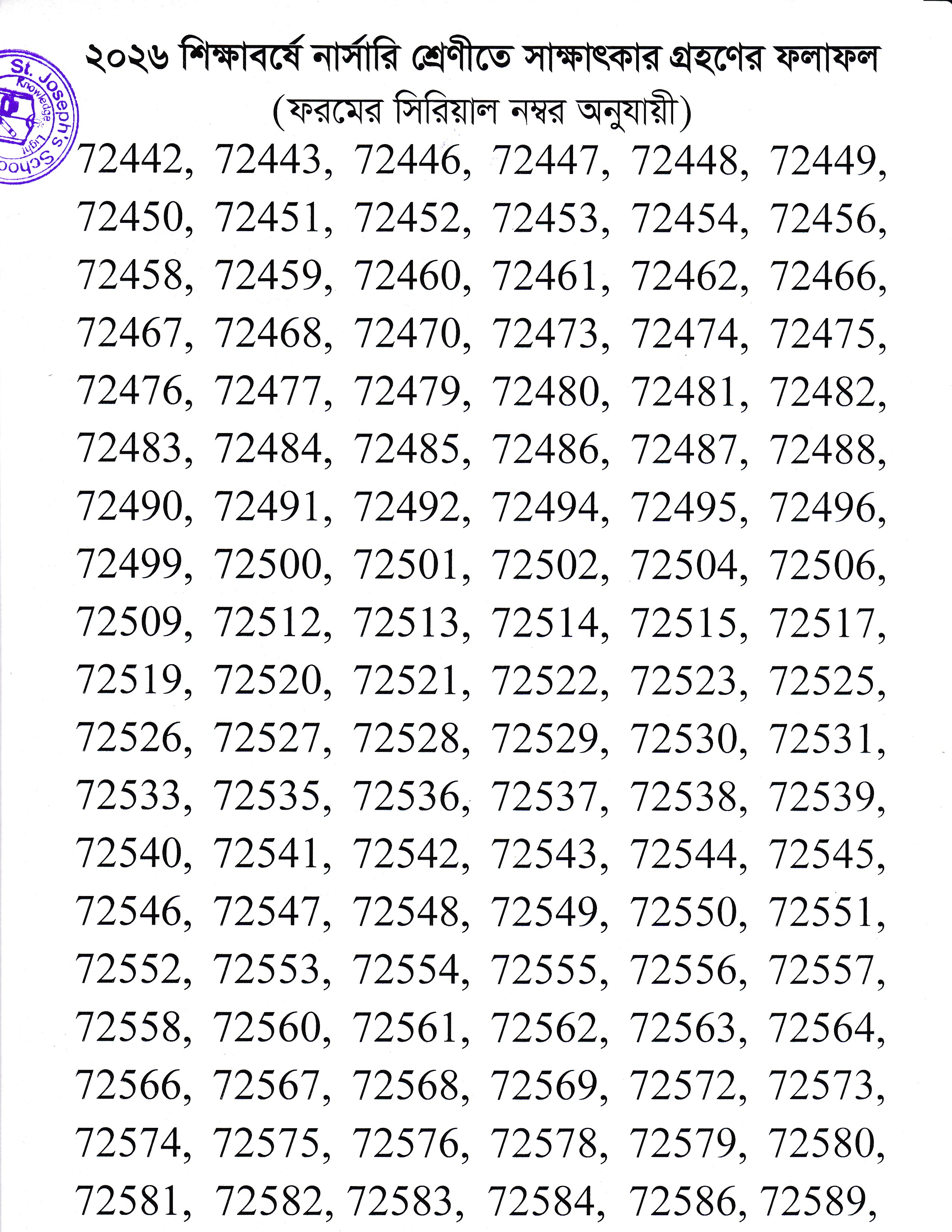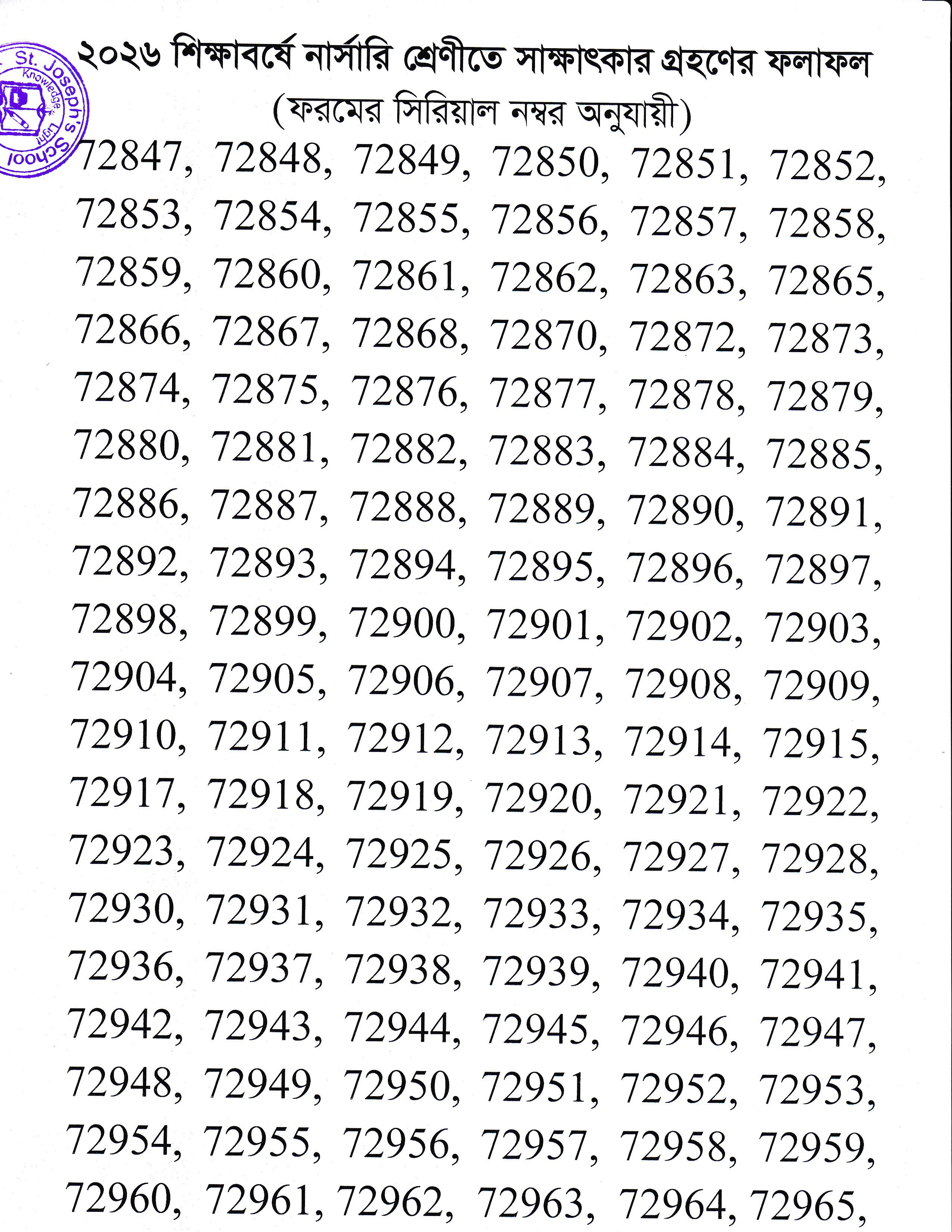 ২০২৬ শিক্ষাবর্ষে নার্সারি শ্রেণিতে সাক্ষাৎকার গ্রহণের ফলাফল প্রসঙ্গে