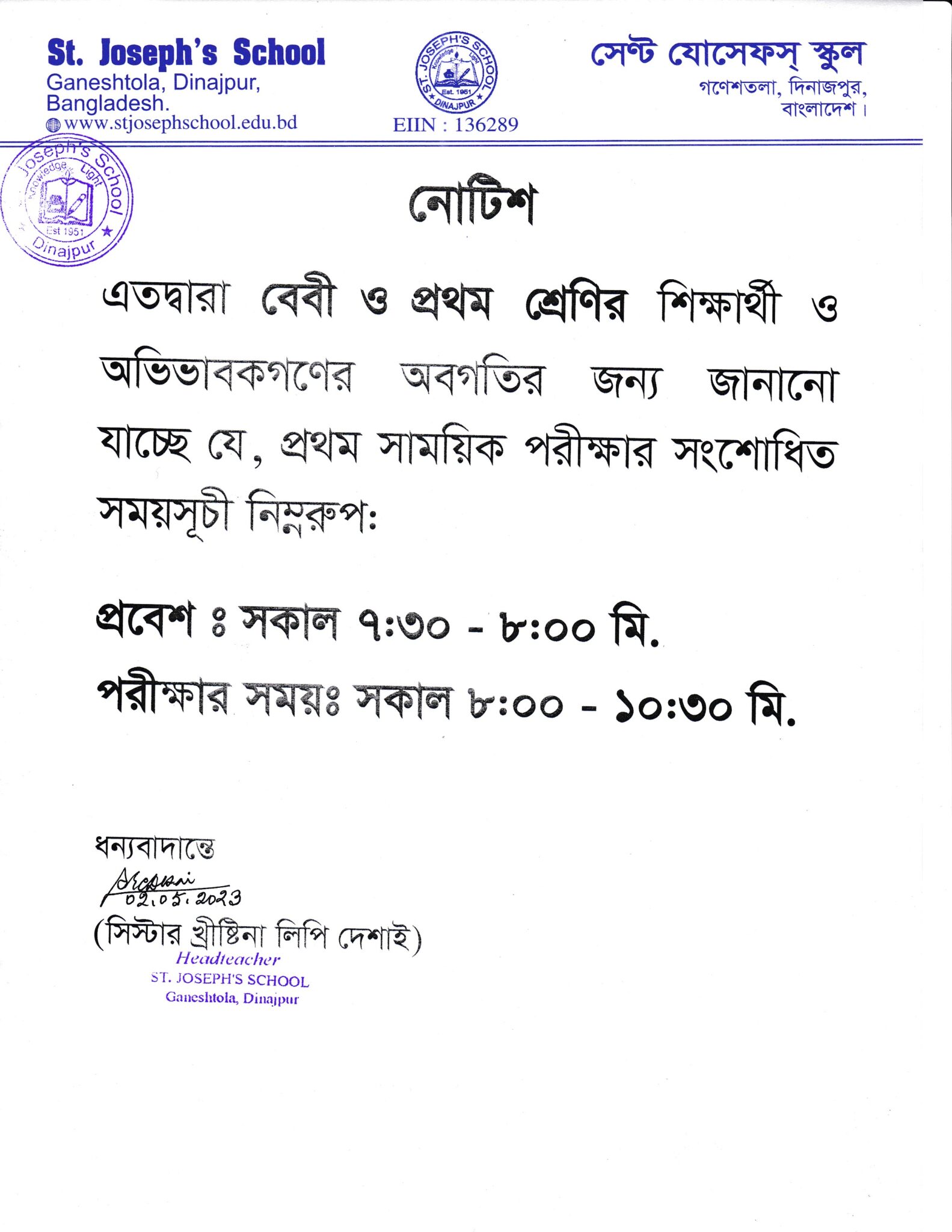 বেবী ও প্রথম শ্রেণির প্রথম সাময়িক পরীক্ষার সংশোধিত সময়সূচী প্রসঙ্গে