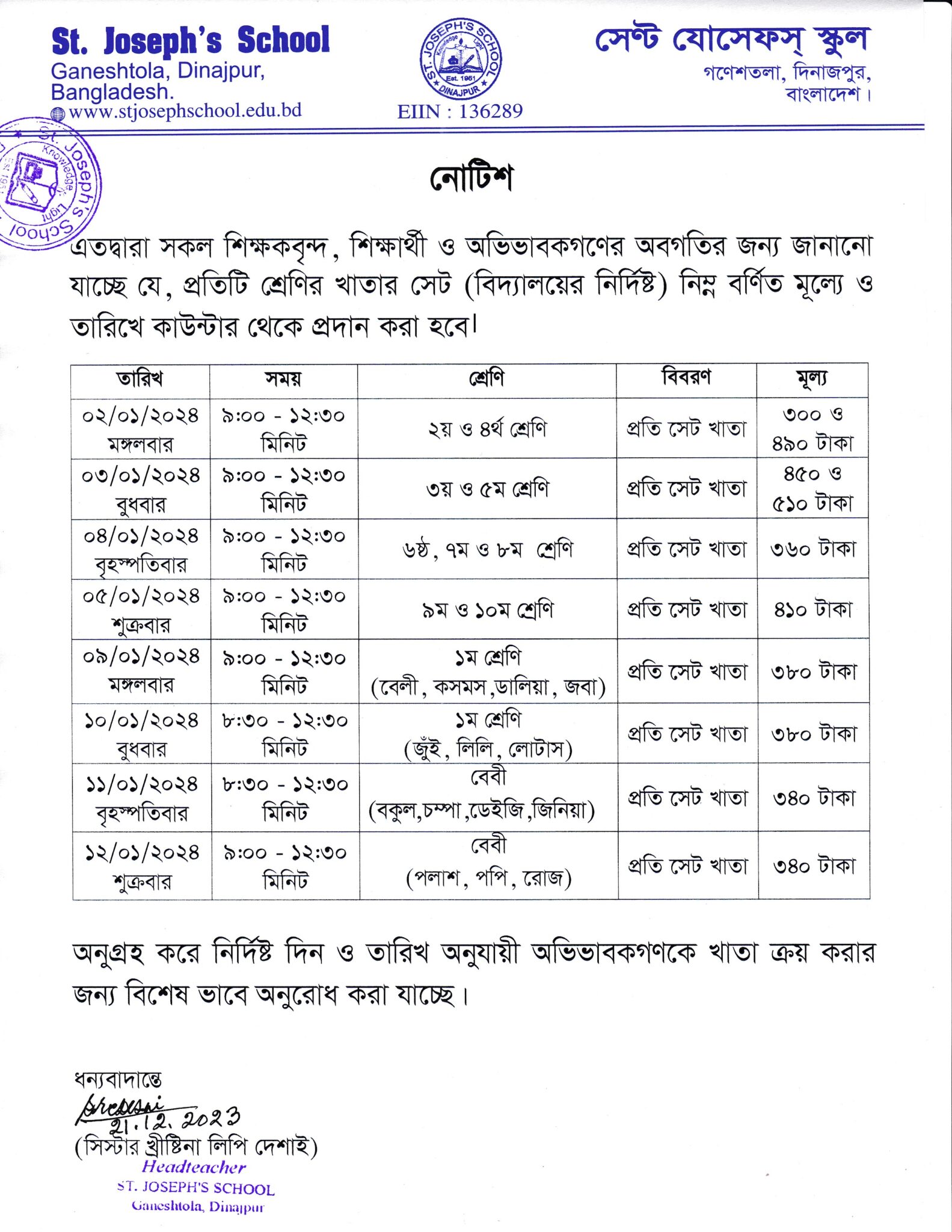 বিদ্যালয়ের নির্দিষ্ট খাতার ক্রয় প্রসঙ্গে