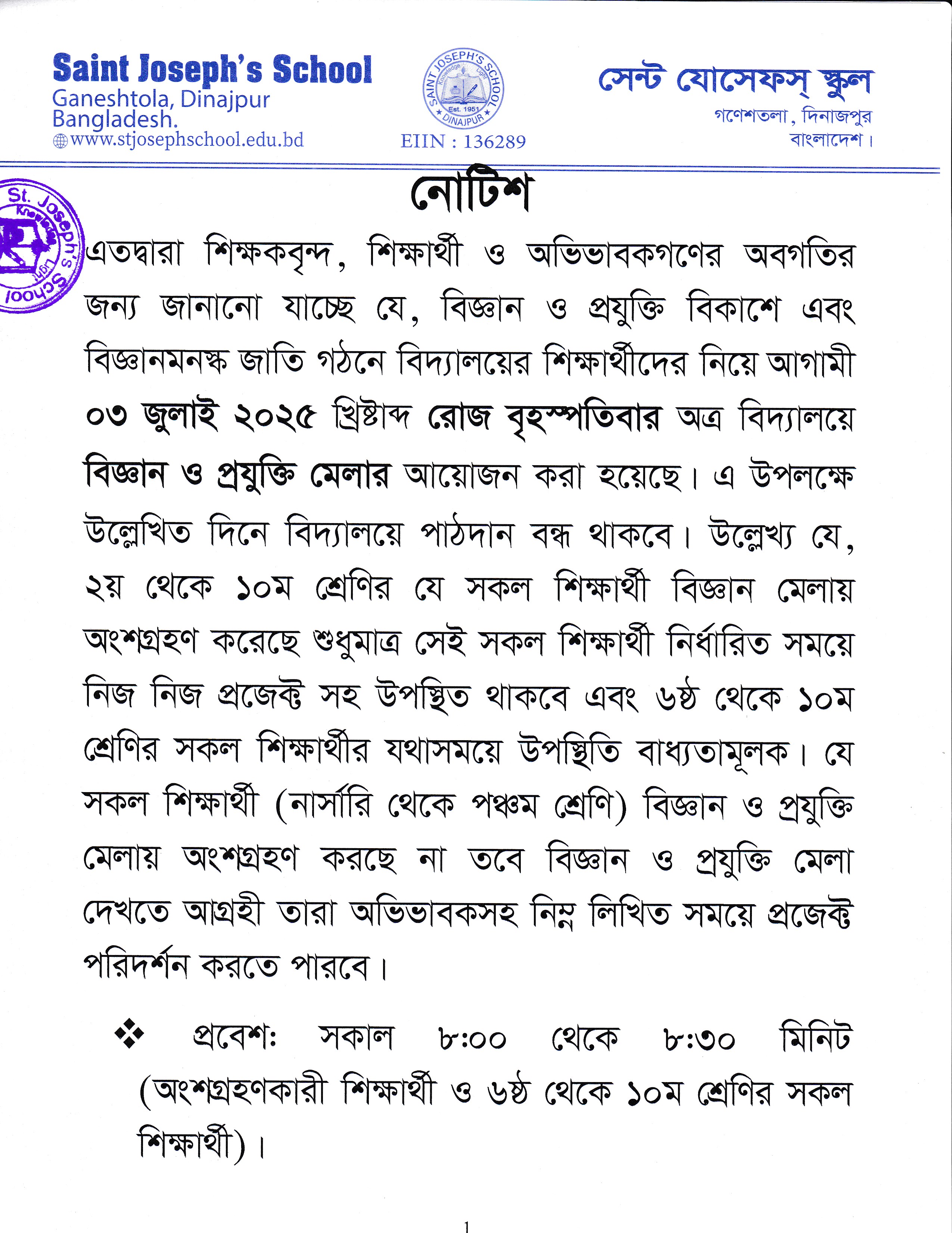 বিজ্ঞান ও প্রযুক্তি মেলা প্রসঙ্গে ২০২৫ খ্রি: