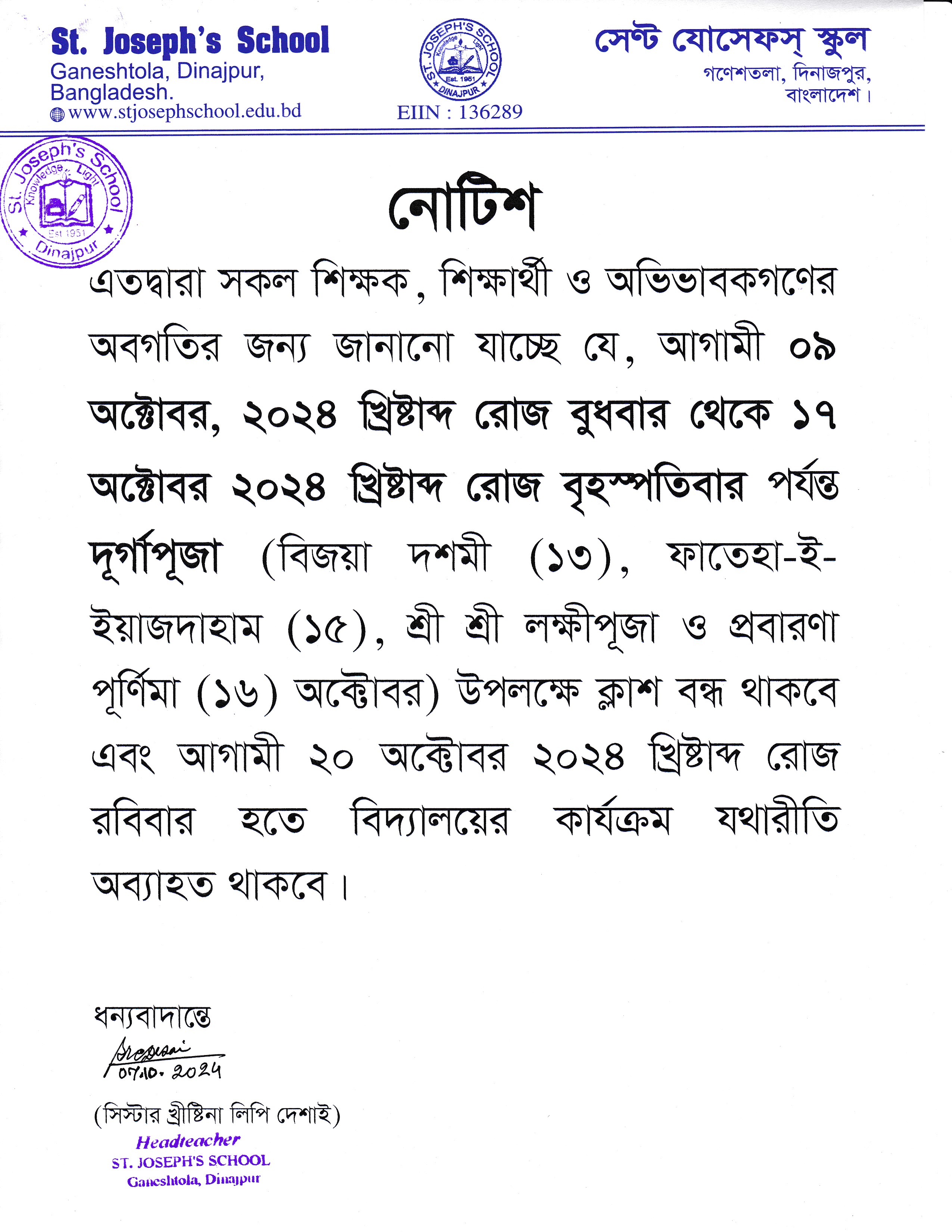 বিজয়া দশমী, ফাতেহা-ই-ইয়াজদাহাম, প্রবারণা পূর্ণিমা উপলক্ষে ক্লাশ বন্ধ প্রসঙ্গে