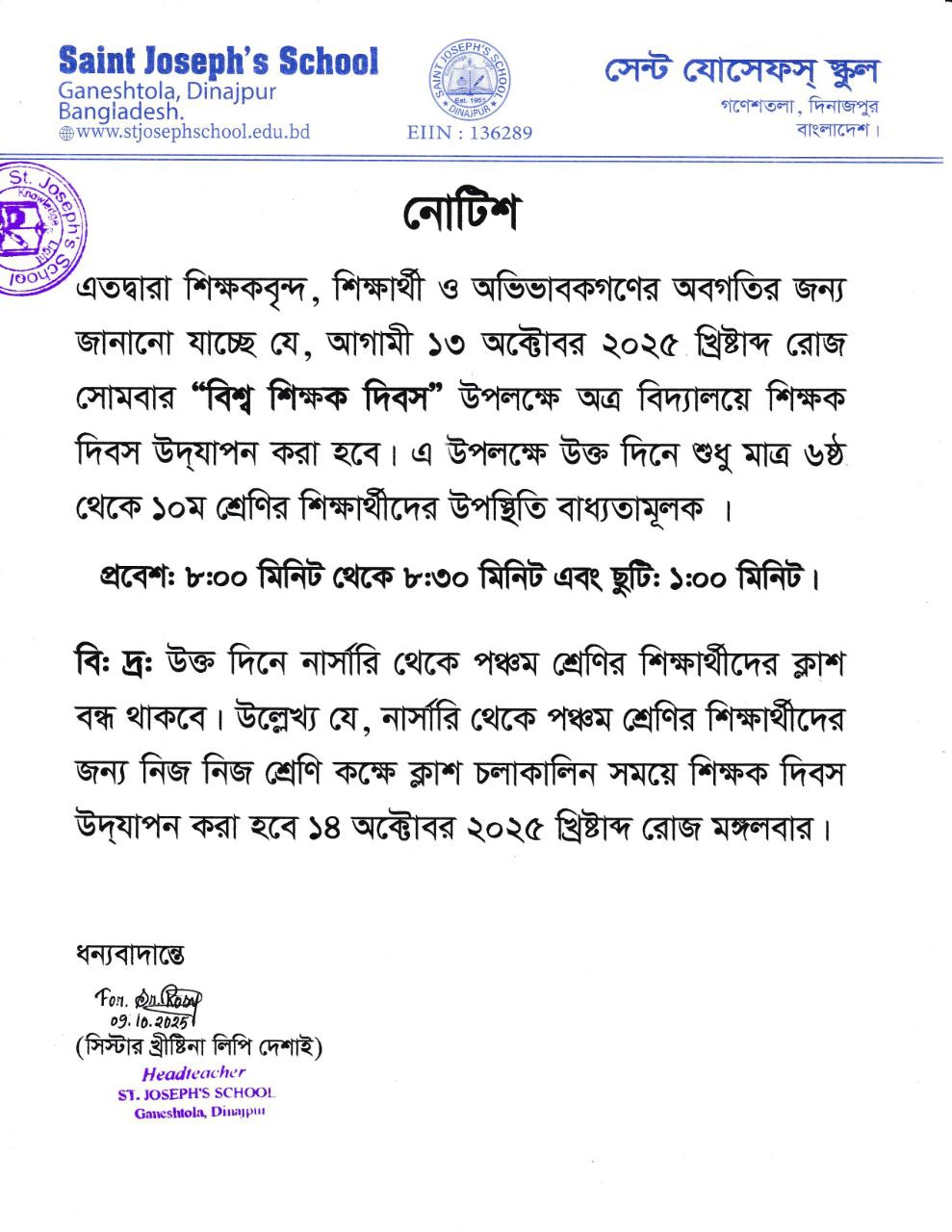বিশ্ব শিক্ষক দিবস উদ্ যাপন প্রসঙ্গে ২০২৫ খ্রি:
