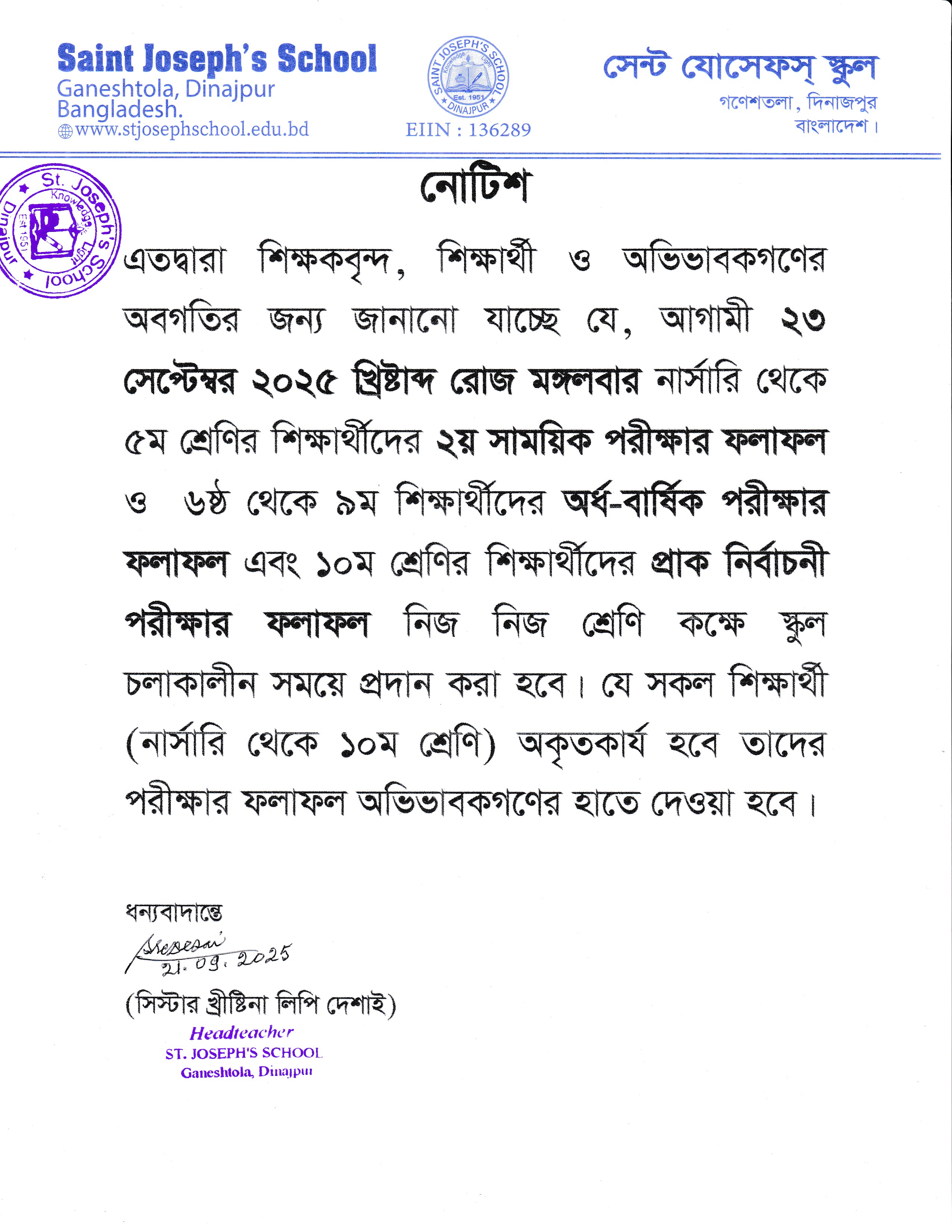 দ্বিতীয় সাময়ীক, অর্ধবার্ষিক ও প্রাক নির্বাচনী পরীক্ষার ফলাফল প্রসঙ্গে ২০২৫ খ্রি:
