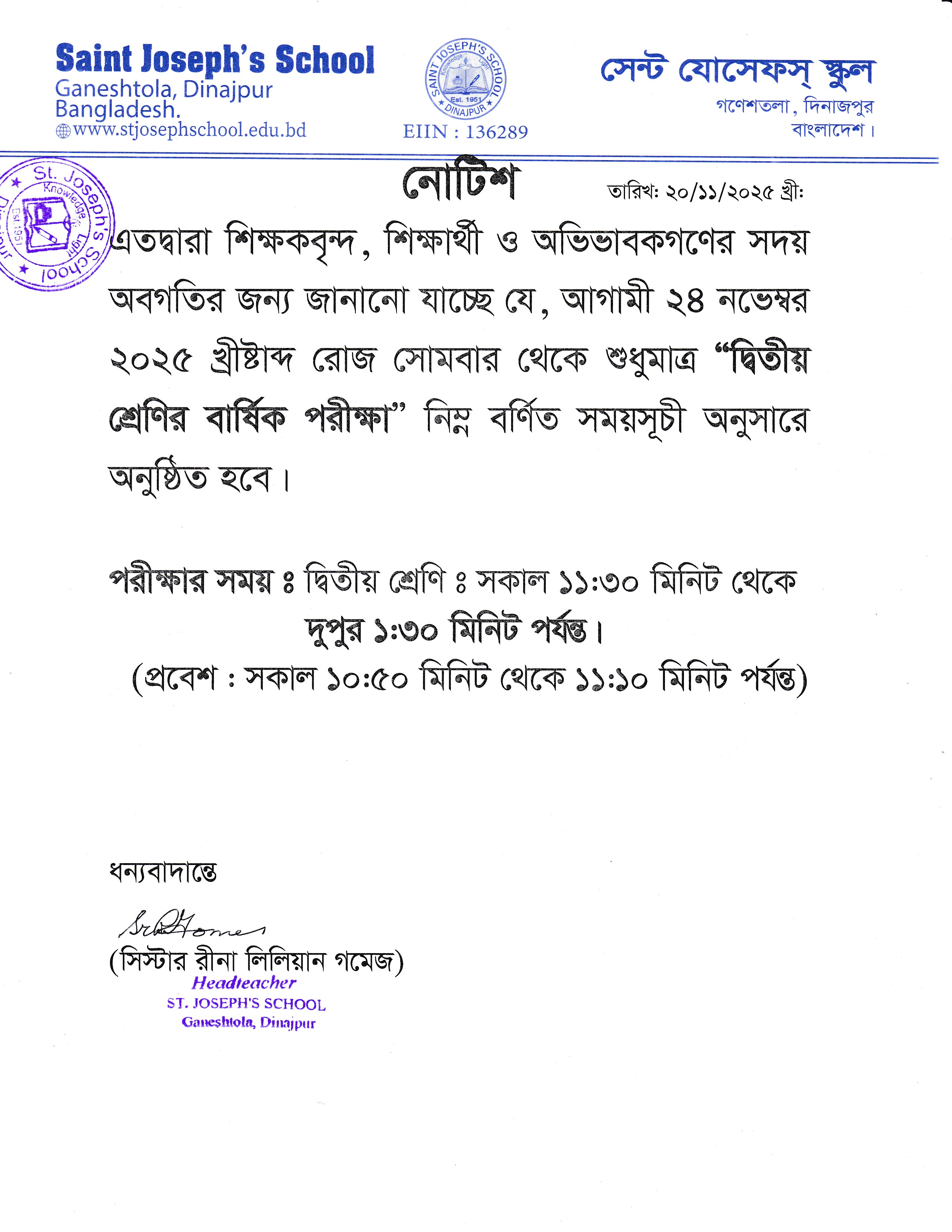 দ্বিতীয় শ্রেণির বার্ষিক পরীক্ষার সময়সূচী পরিবর্তন প্রসঙ্গে ২০২৫ খ্রী: