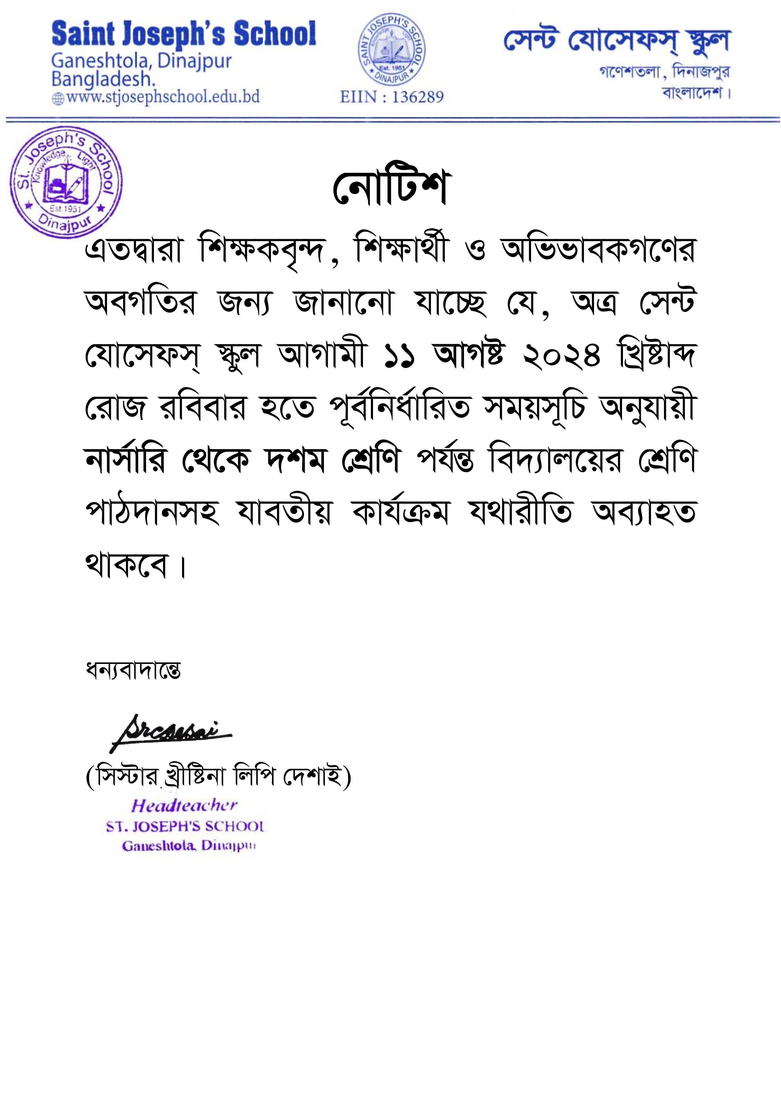নার্সারি থেকে দশম শ্রেণি পর্যন্ত বিদ্যালয়ের শ্রেণি পাঠদান প্রসঙ্গে