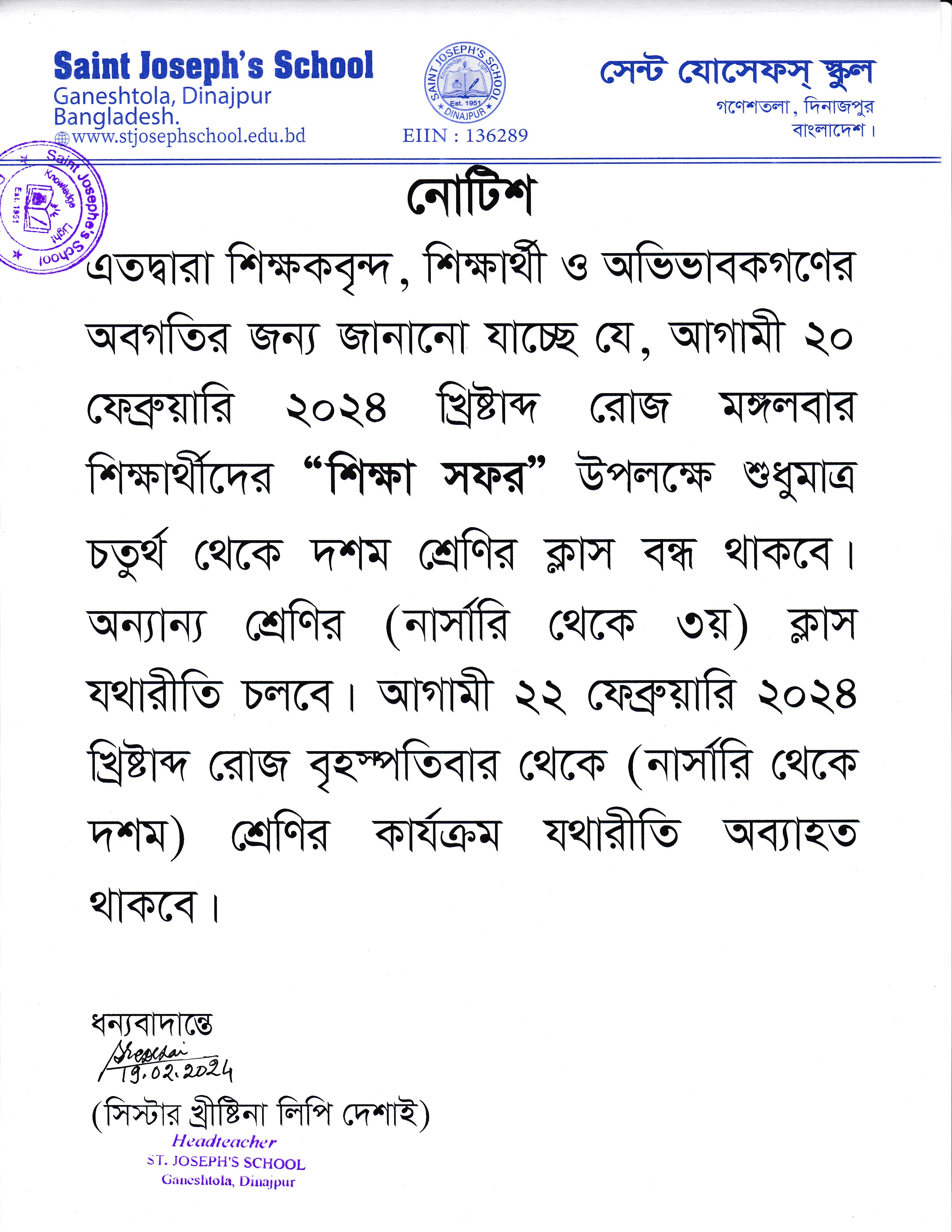 শিক্ষার্থীদের শিক্ষা সফর প্রসঙ্গে