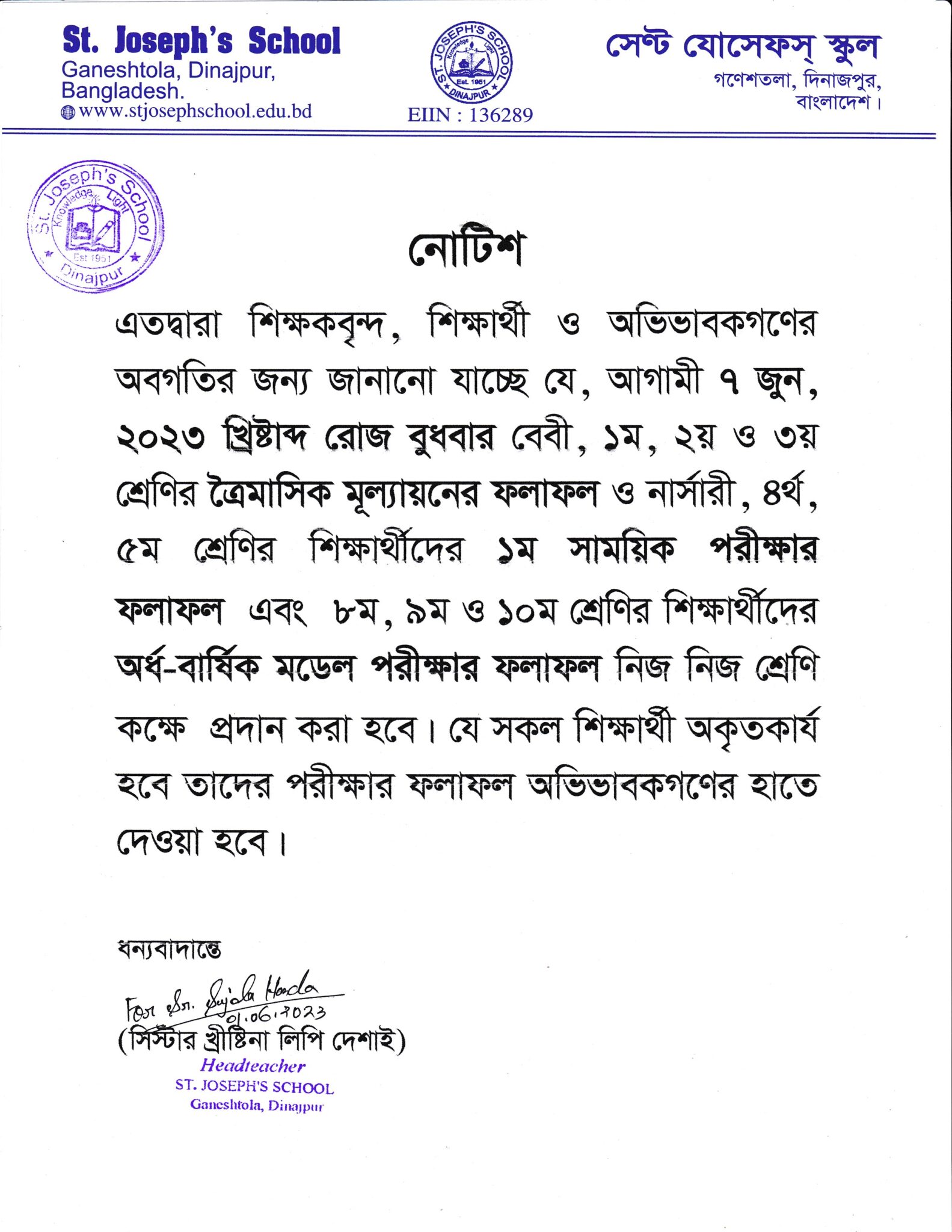 ত্রৈমাসিক মূল্যায়ন, ১ম সাময়িক ও অর্ধবার্ষিক পরীক্ষা ২০২৩ এর ফলাফল প্রসঙ্গে