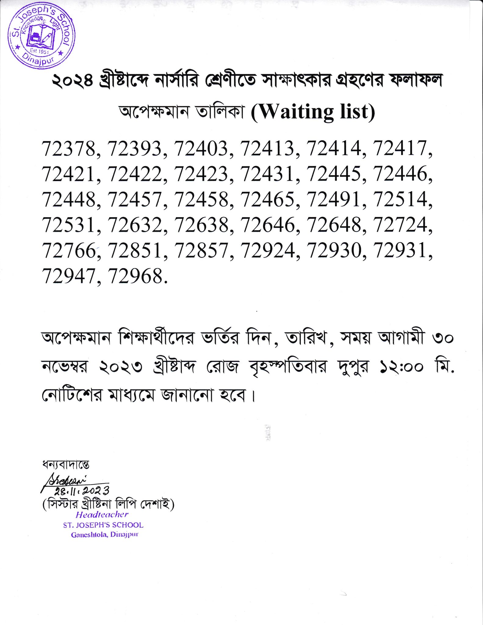 ২০২৪ শিক্ষাবর্ষে নার্সারি শ্রেণীতে সাক্ষাৎকার গ্রহণের ফলাফল.jpg | Download |