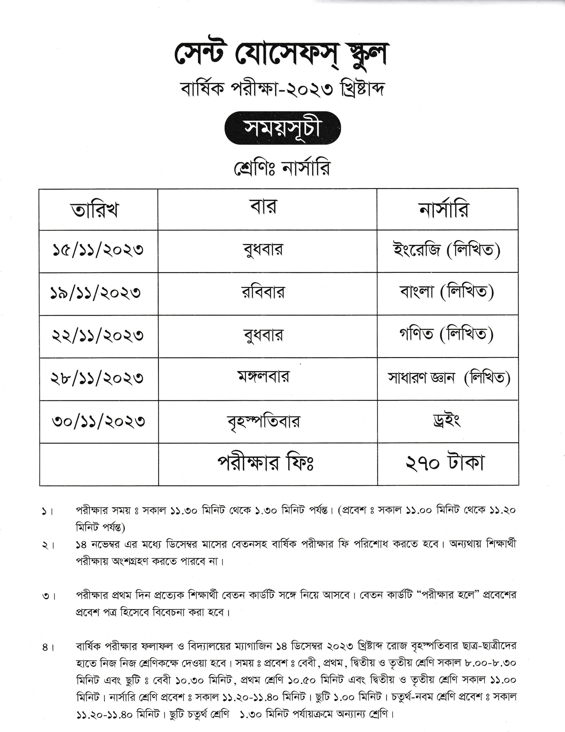 বার্ষিক পরীক্ষার রুটিন নার্সারি ২০২৩ খ্রি: