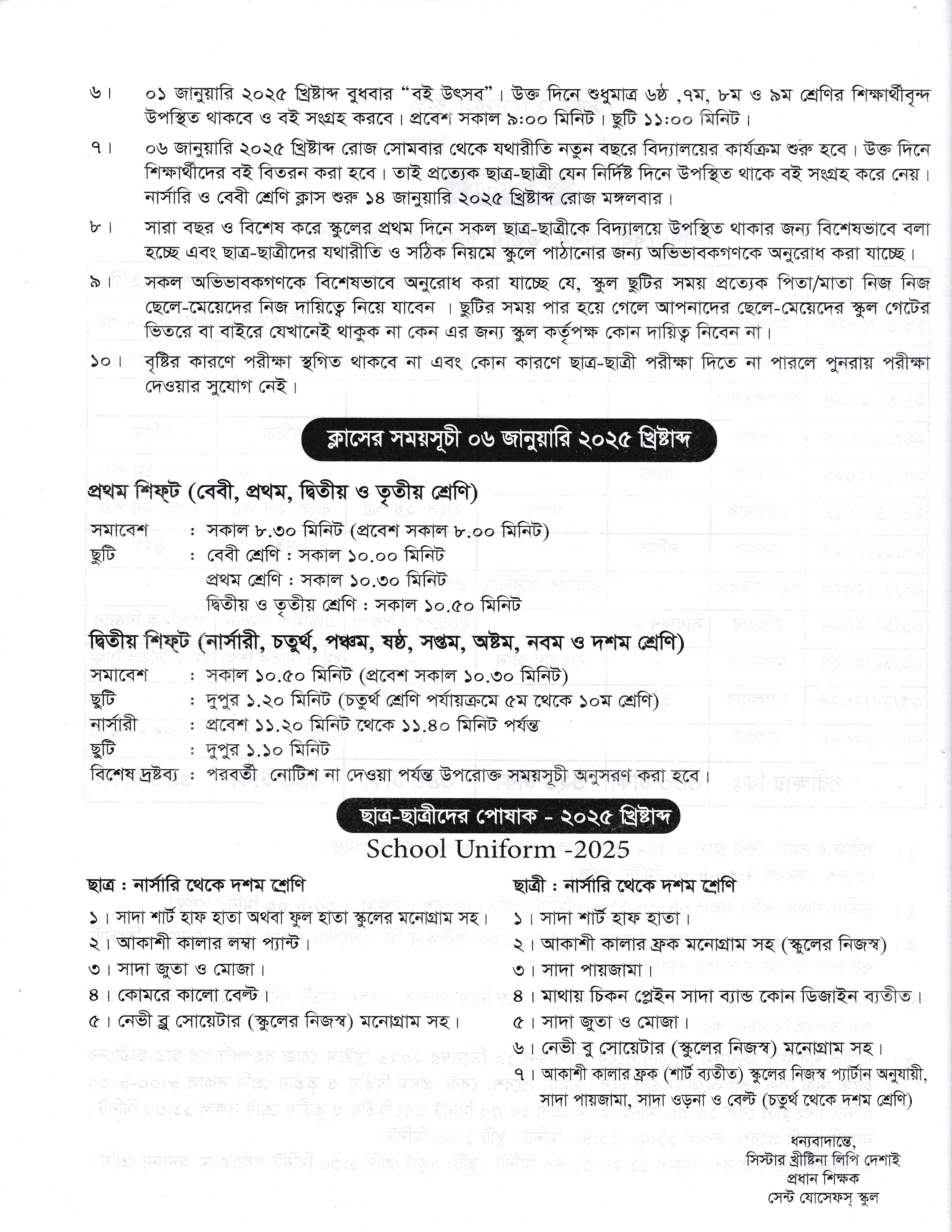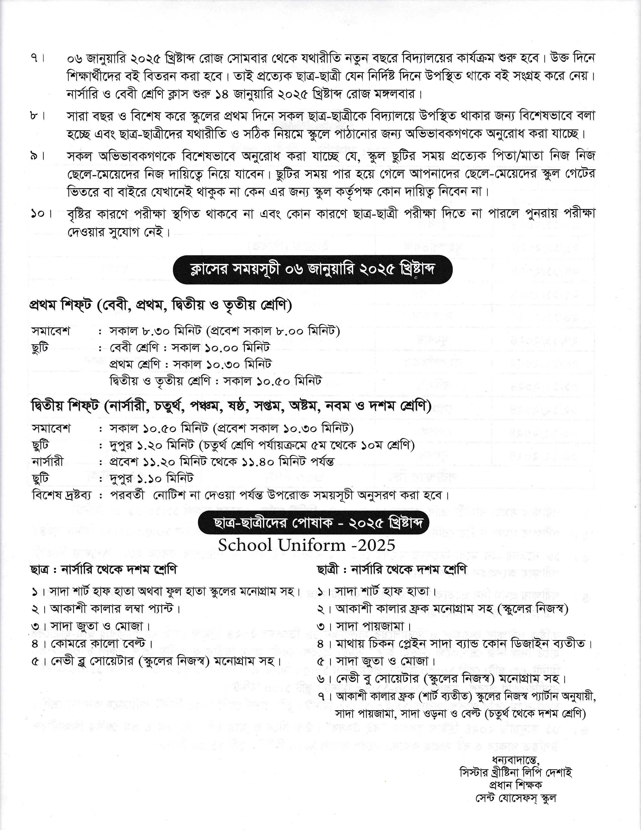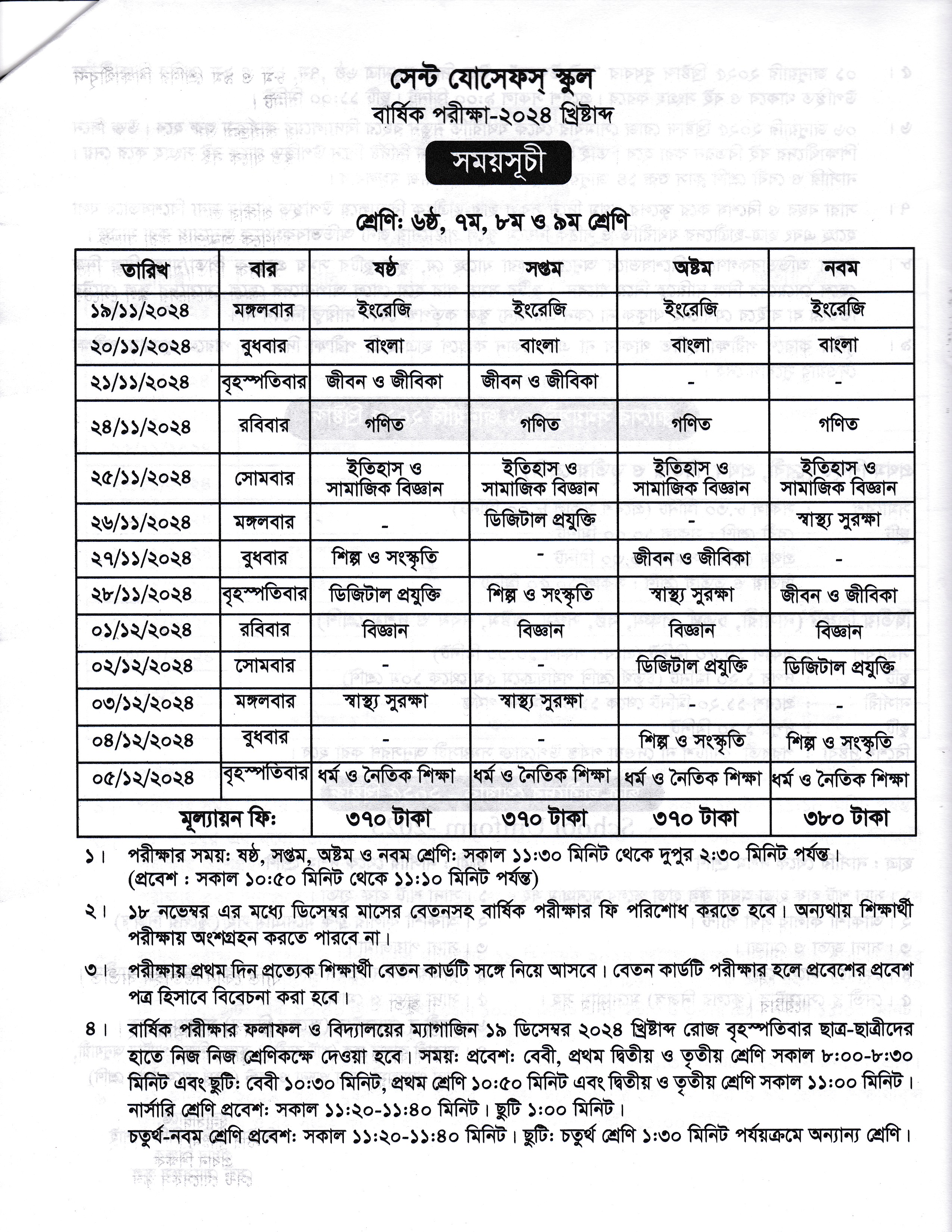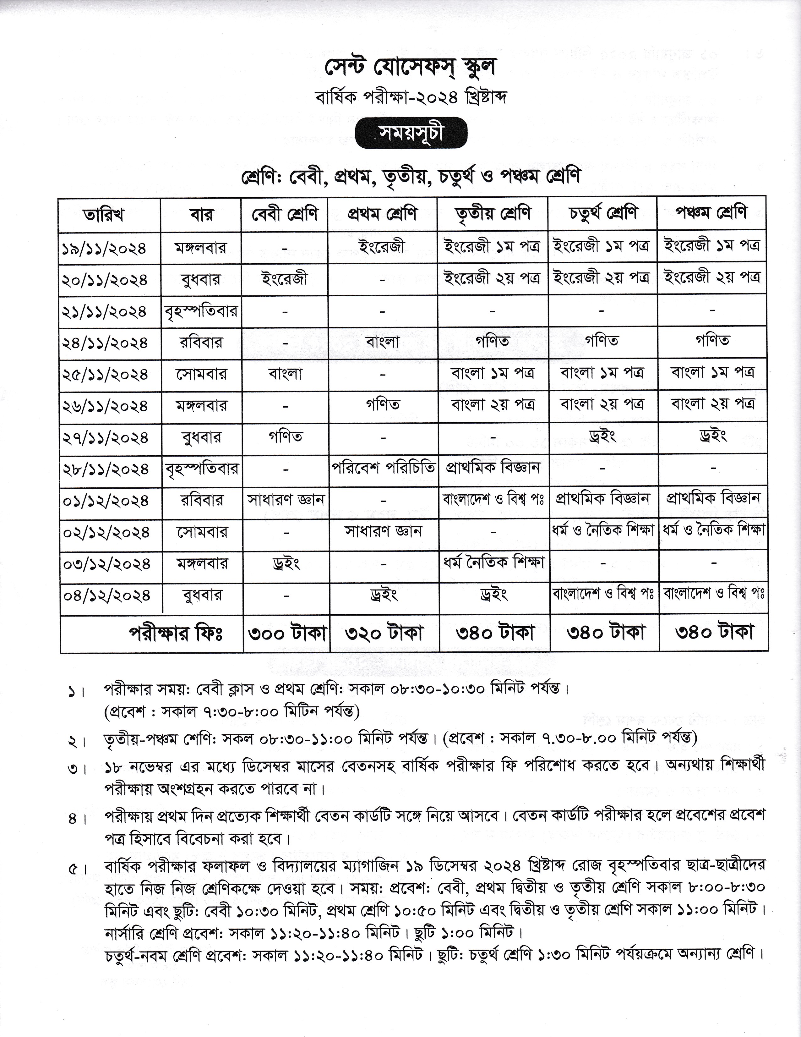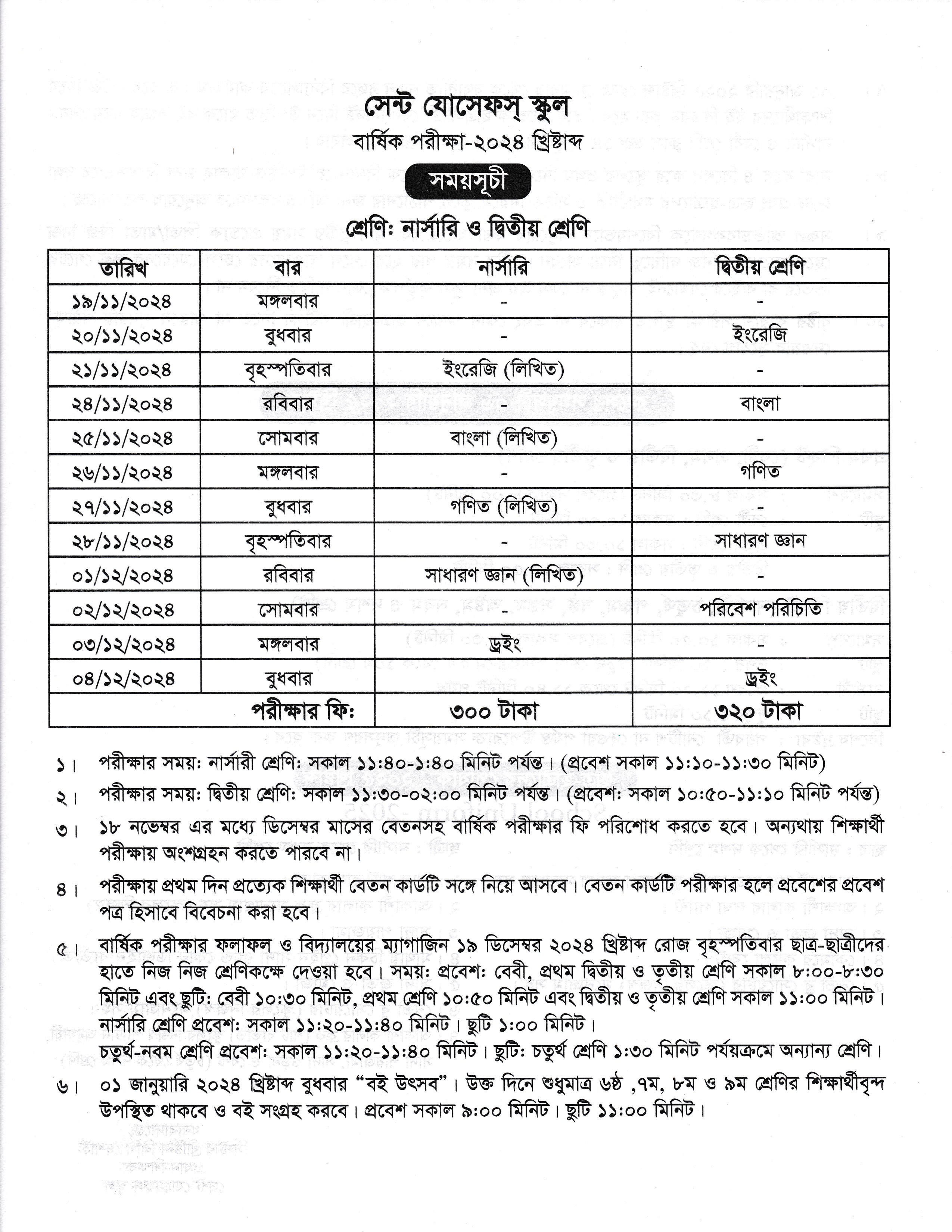 বার্ষিক পরীক্ষার সময়সূচী ২০২৪ খ্রিঃ (নার্সারি থেকে ৯ম শ্রেণি)