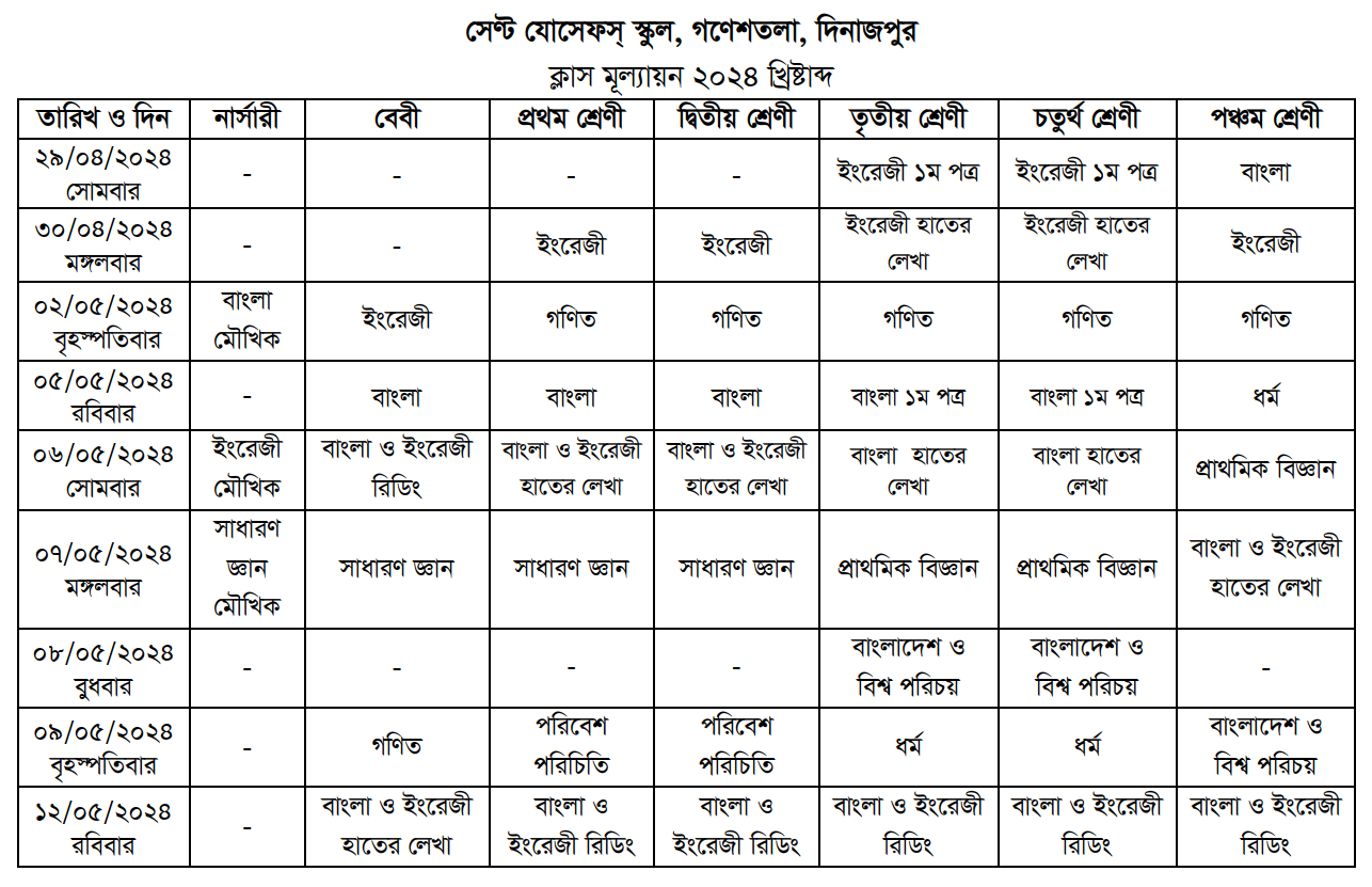 ক্লাস মূল্যায়ন ২০২৪ খ্রিষ্টাব্দ এর রুটিন 28/04/2024