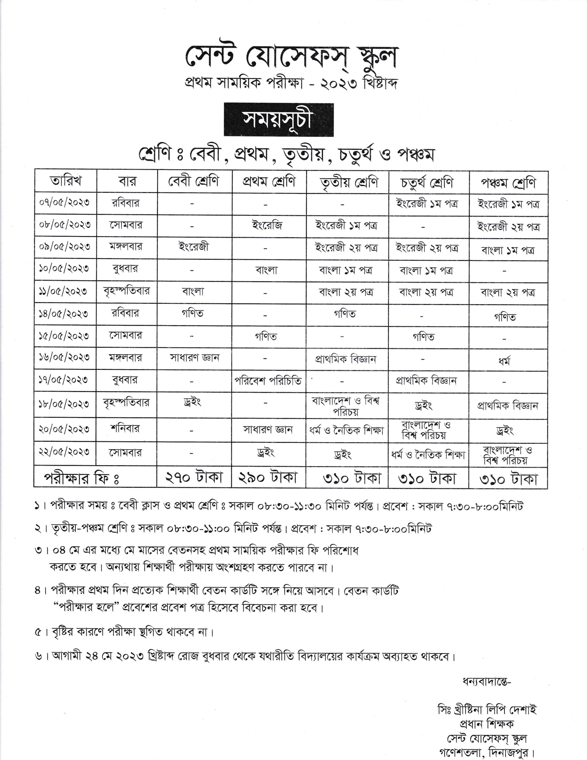 প্রথম সাময়িক ও অর্ধ বার্ষিক মডেল পরীক্ষার রুটিন ২০২৩ খ্রি: বেবী, প্রথম, তৃতীয় – পঞ্চম শ্রেণি