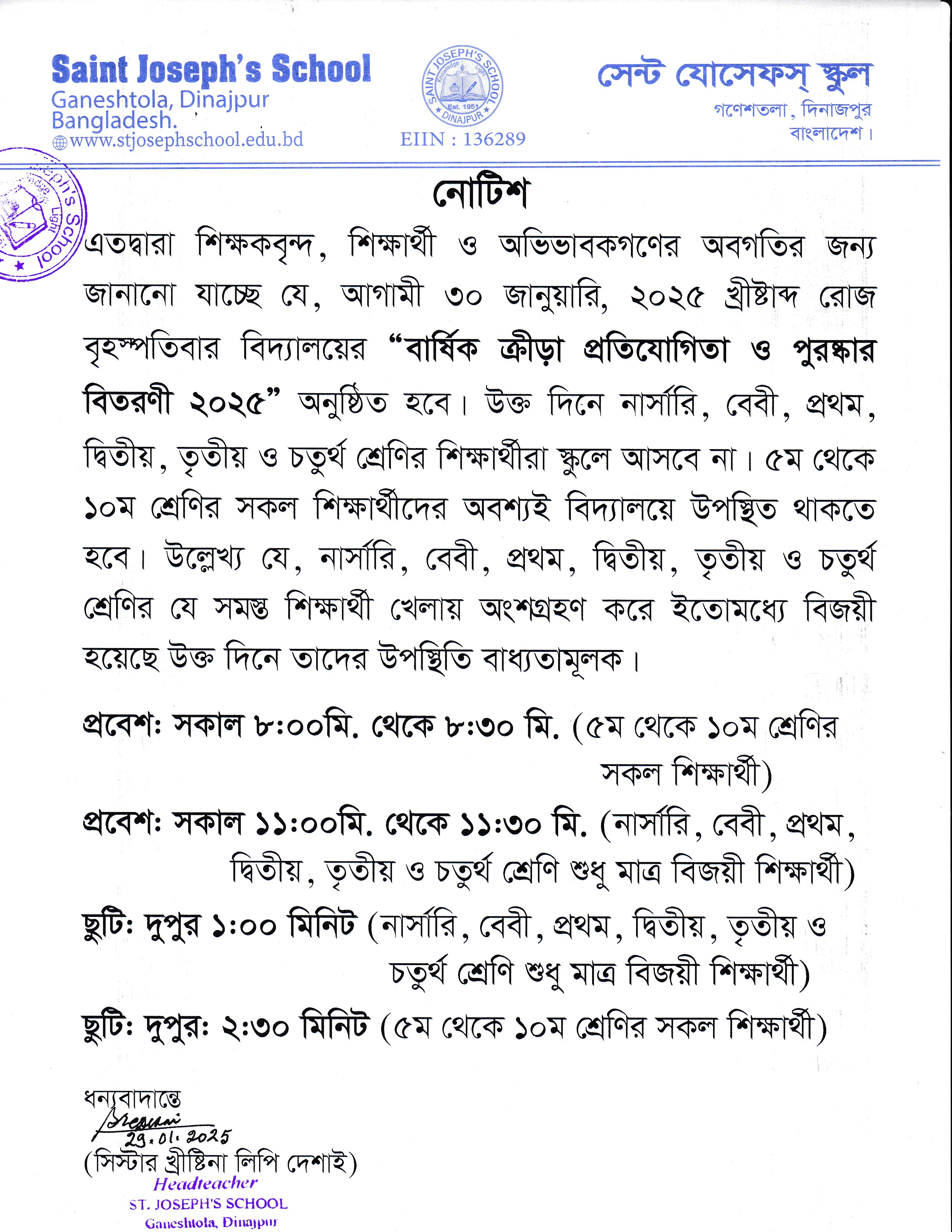 “বার্ষিক ক্রীড়া প্রতিযোগিতা ও পুরষ্কার বিতরণী ২০২৫” প্রসঙ্গে
