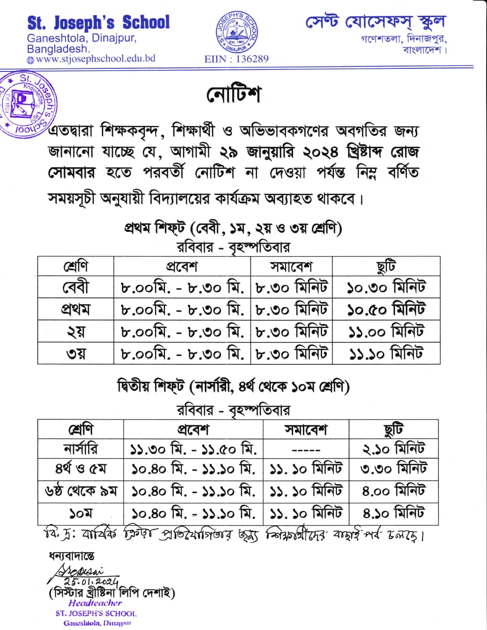বিদ্যালয়ের ফুলটাইম টেবিল প্রসঙ্গে