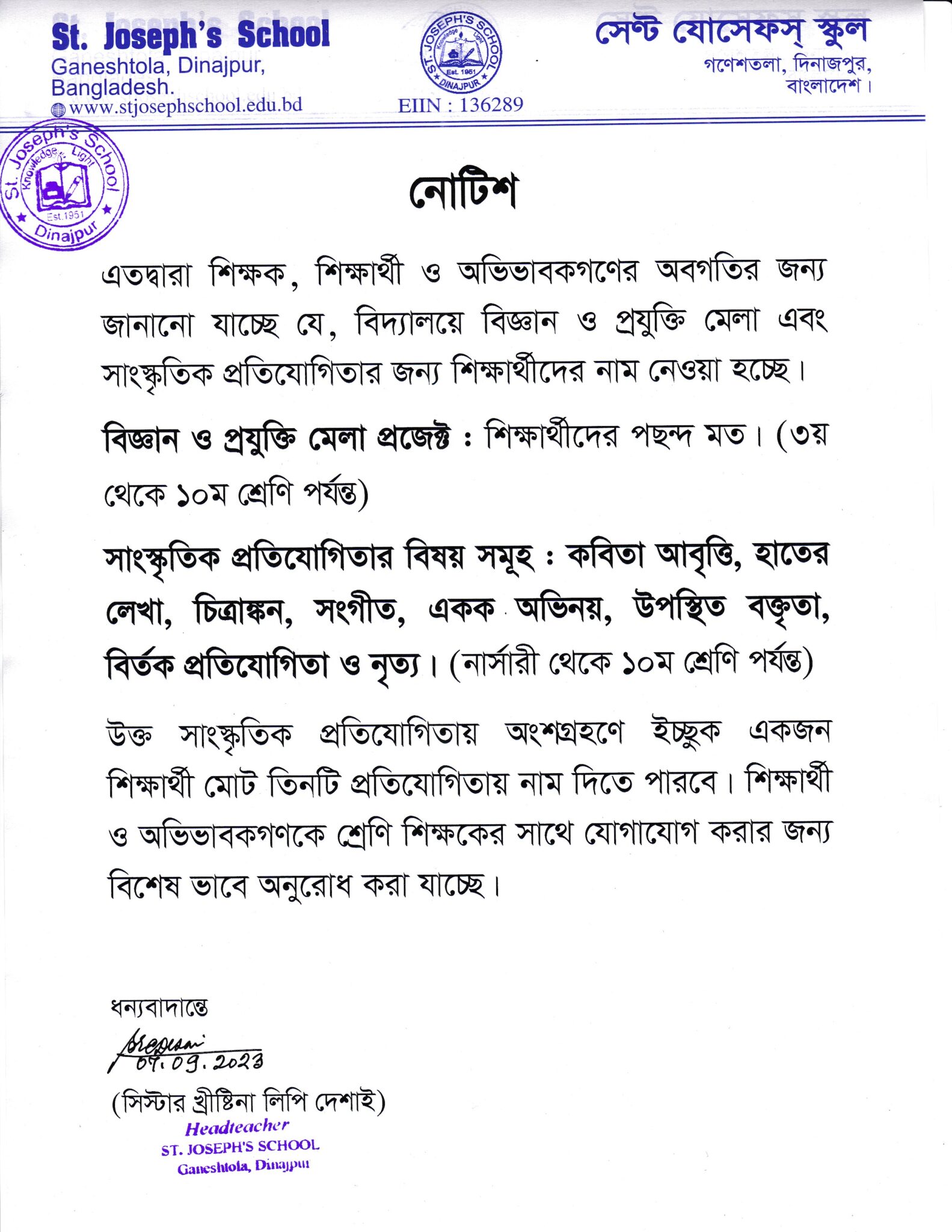 বিজ্ঞান ও প্রযুক্তি মেলা এবং সাংসকৃতকি প্রতিযোগিতায় অংশগ্রহণ প্রসঙ্গে
