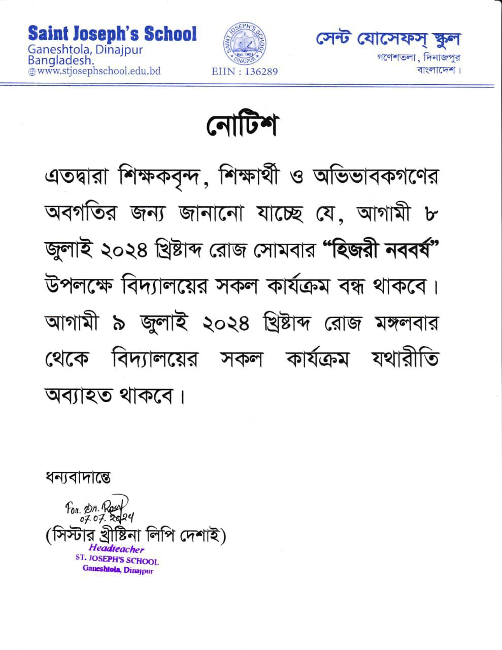 হিজরী নববর্ষ উপলক্ষে বিদ্যায়ের সকল কাযক্রম বন্ধ প্রসঙ্গে