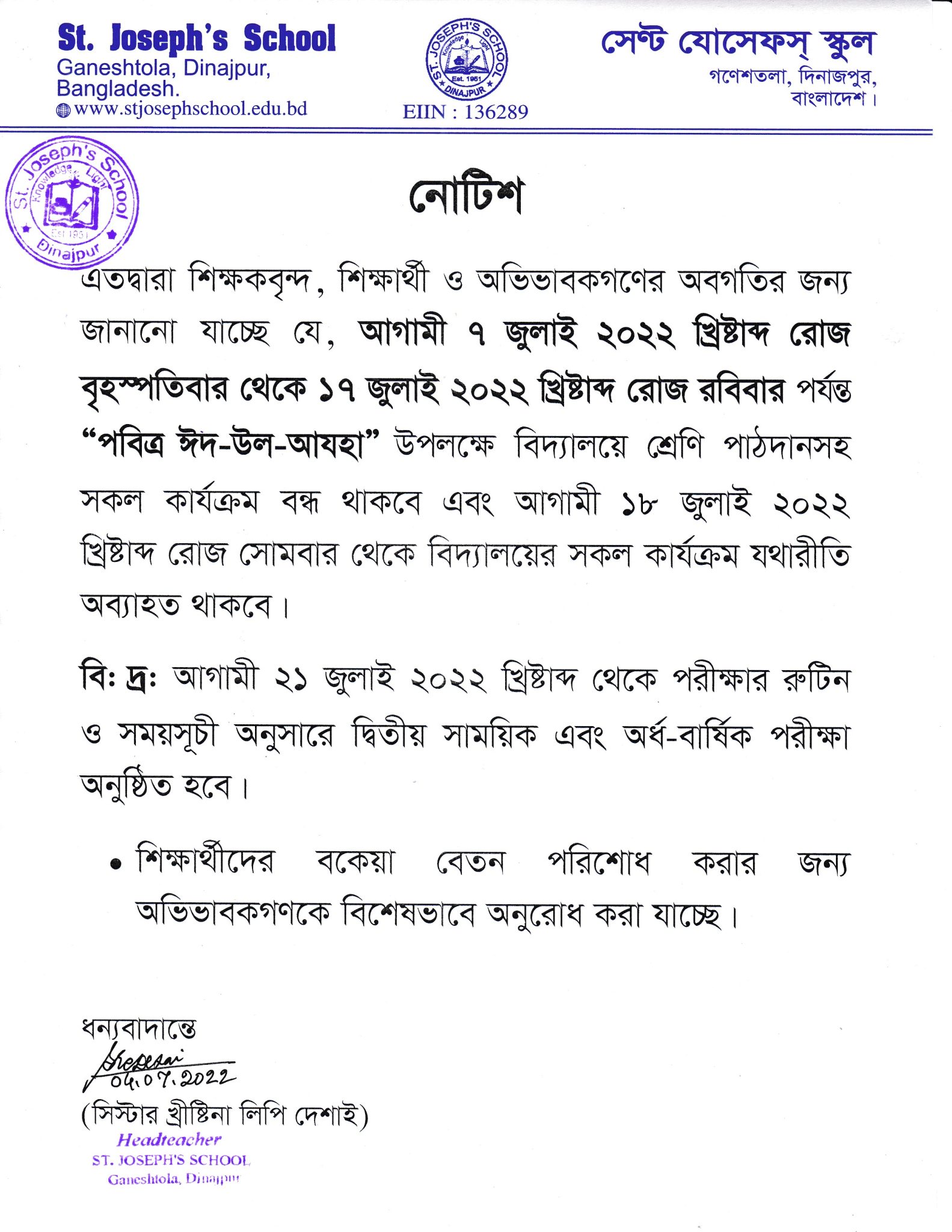 “পবিত্র ঈদ-উল-আযহা” উপলক্ষে ছুটির নোটিশ