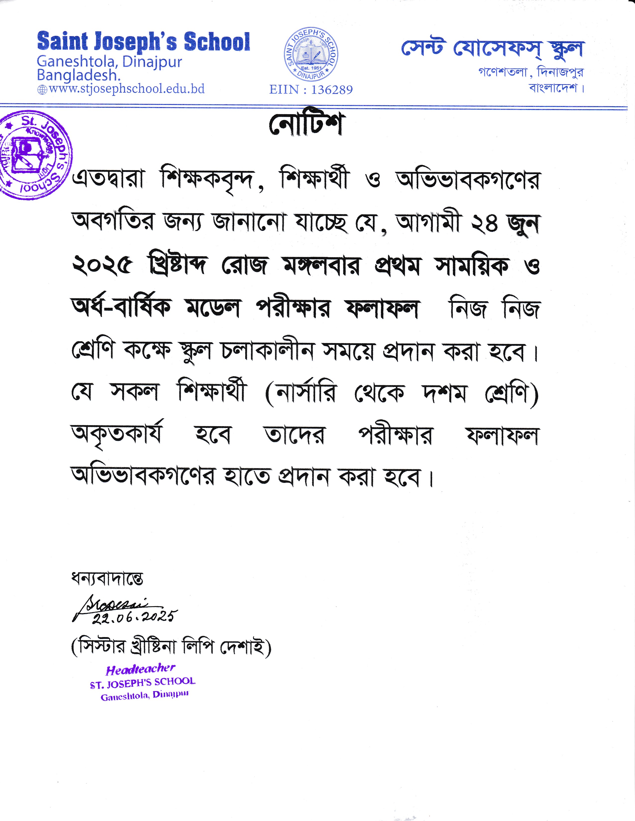 প্রথম সাময়িক ও অর্ধ-বার্ষিক মডেল পরীক্ষার ফলাফল প্রসঙ্গে ২০২৫খ্রি: