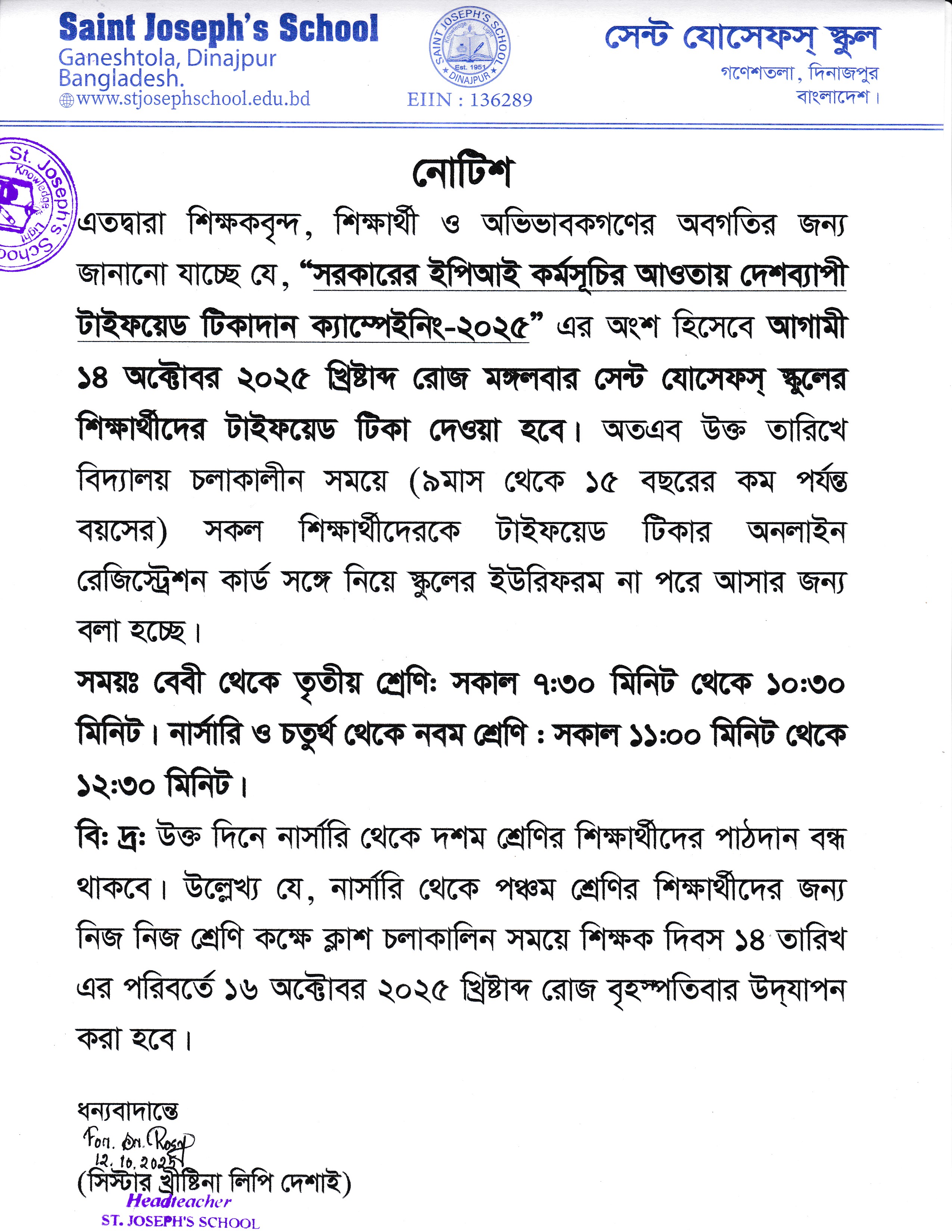 টাইফয়েড টিকাদান প্রসঙ্গে ২০২৫ খ্রি:
